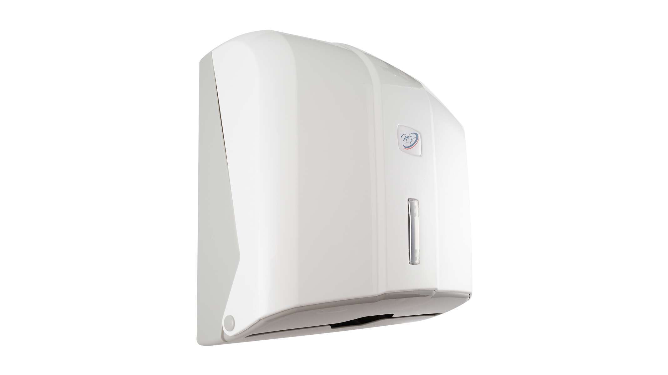 Диспенсер для бумажных полотенец KH300 NV, Z сложения, предназначен для оснащения санитарно-гигиенических комнат, спортивных, медицинских заведений, баров, ресторанов, кафе, школ, и др. общественных мест. Со смотровым окном. Диспенсер изготовлен из прочного ABS пластика. С ключом и креплением в комплекте. Максимальный размер листа бумаги 25*8см