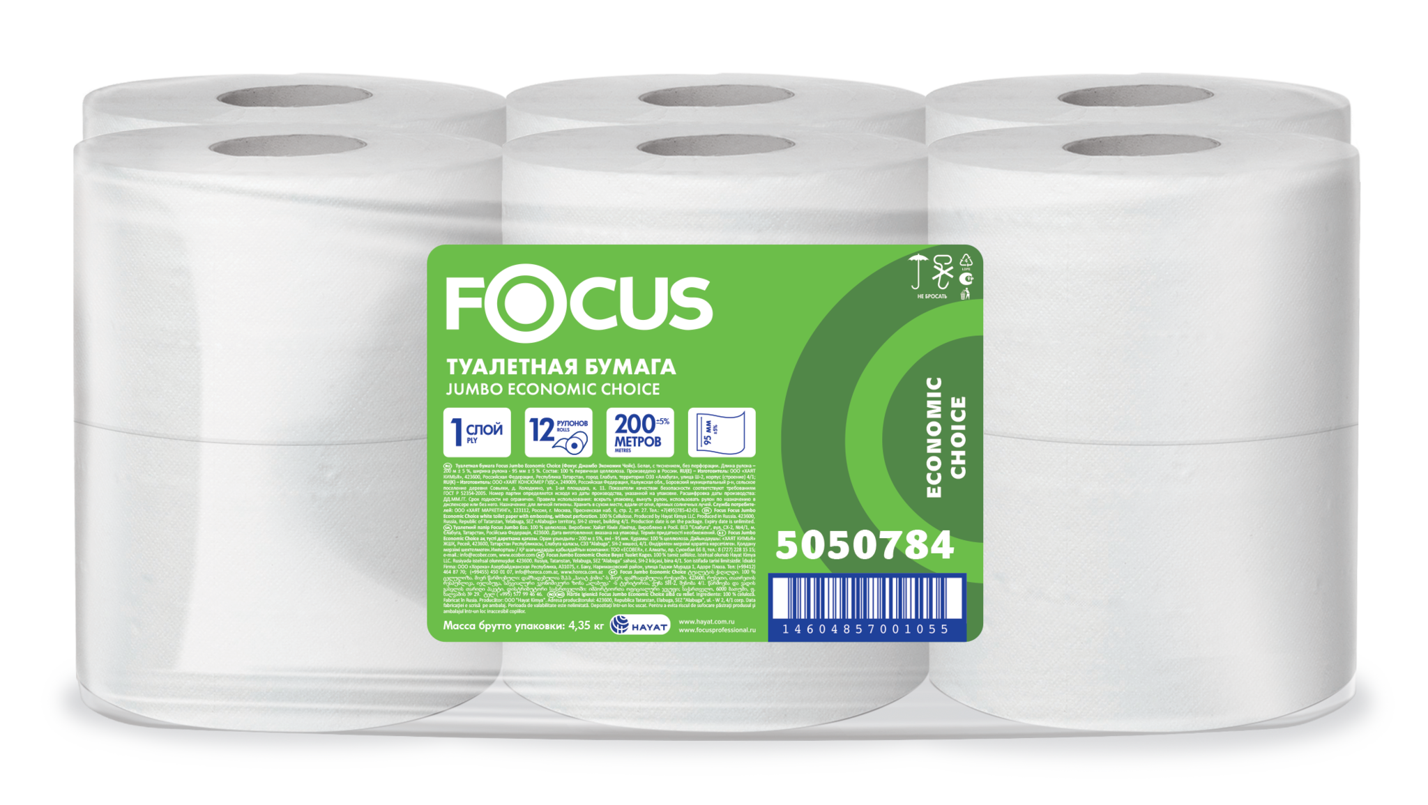 Туалетная бумага Focus Eco Jumbo Артикул 5050784, 200м, 1 слой. Прекрасно подойдет для мест с высокой проходимостью.