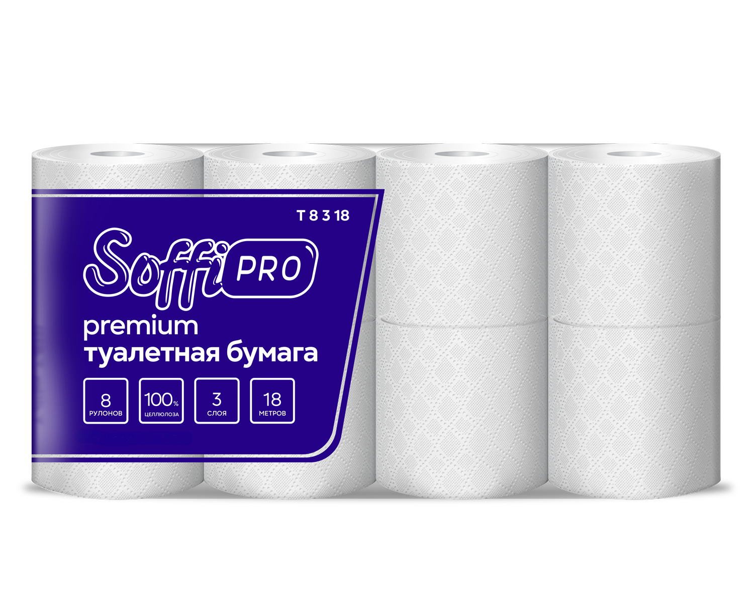 Туалетная бумага Soffione SoffiPro Premium⭐️Артикул 10900976, 3 слоя, 18м, 8 рулонов. Прекрасно подойдет для мест с высокой проходимостью. Состав - 100% целлюлоза.