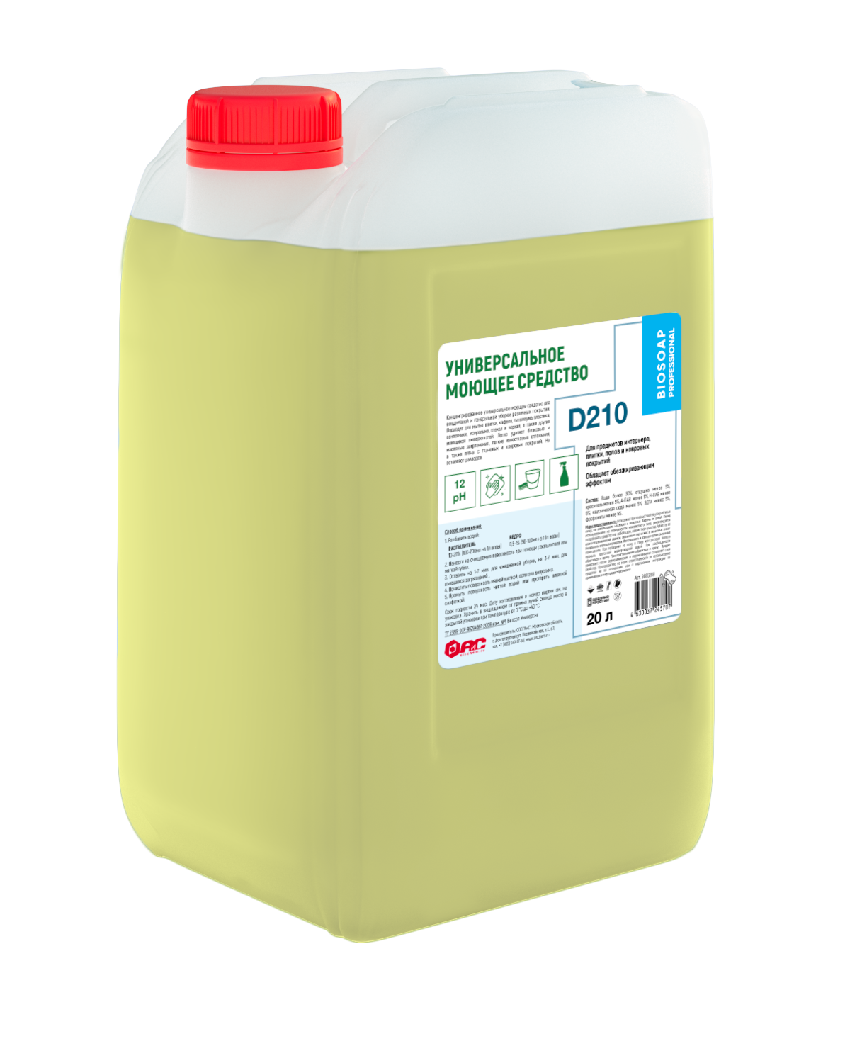 Концентрированное универсальное моющее средство Артикул D210 для ежедневной и генеральной уборки различных покрытий.